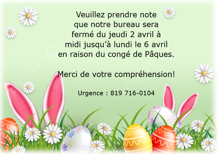 Bureau fermé – Congé de Pâques